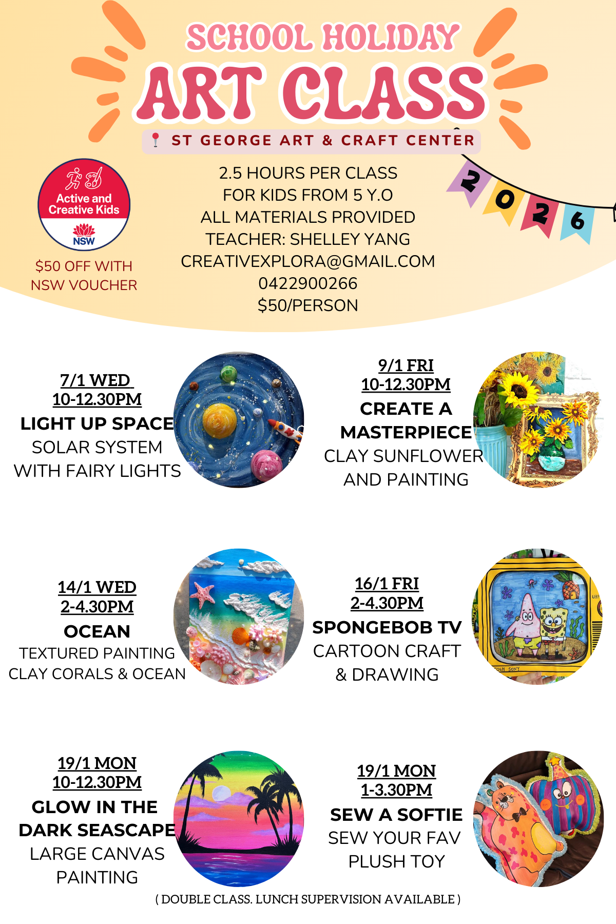 Active Kids Creative Kids voucher $50 credit for future classes